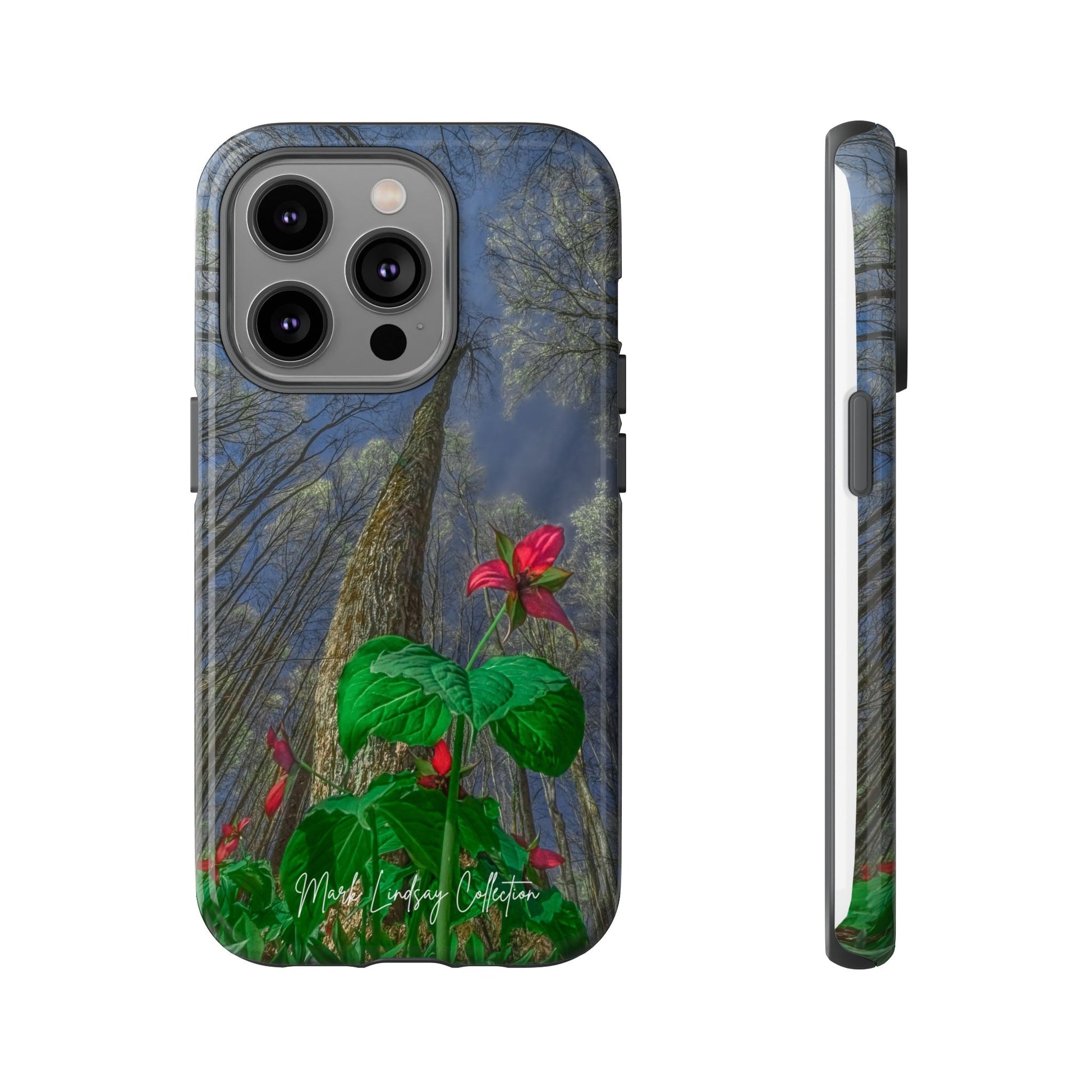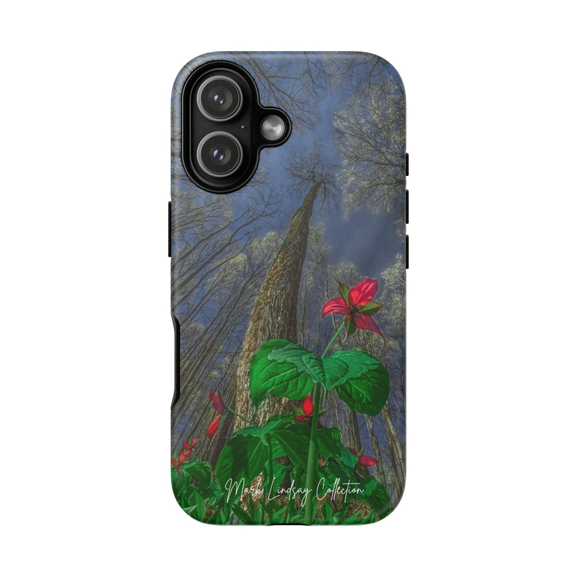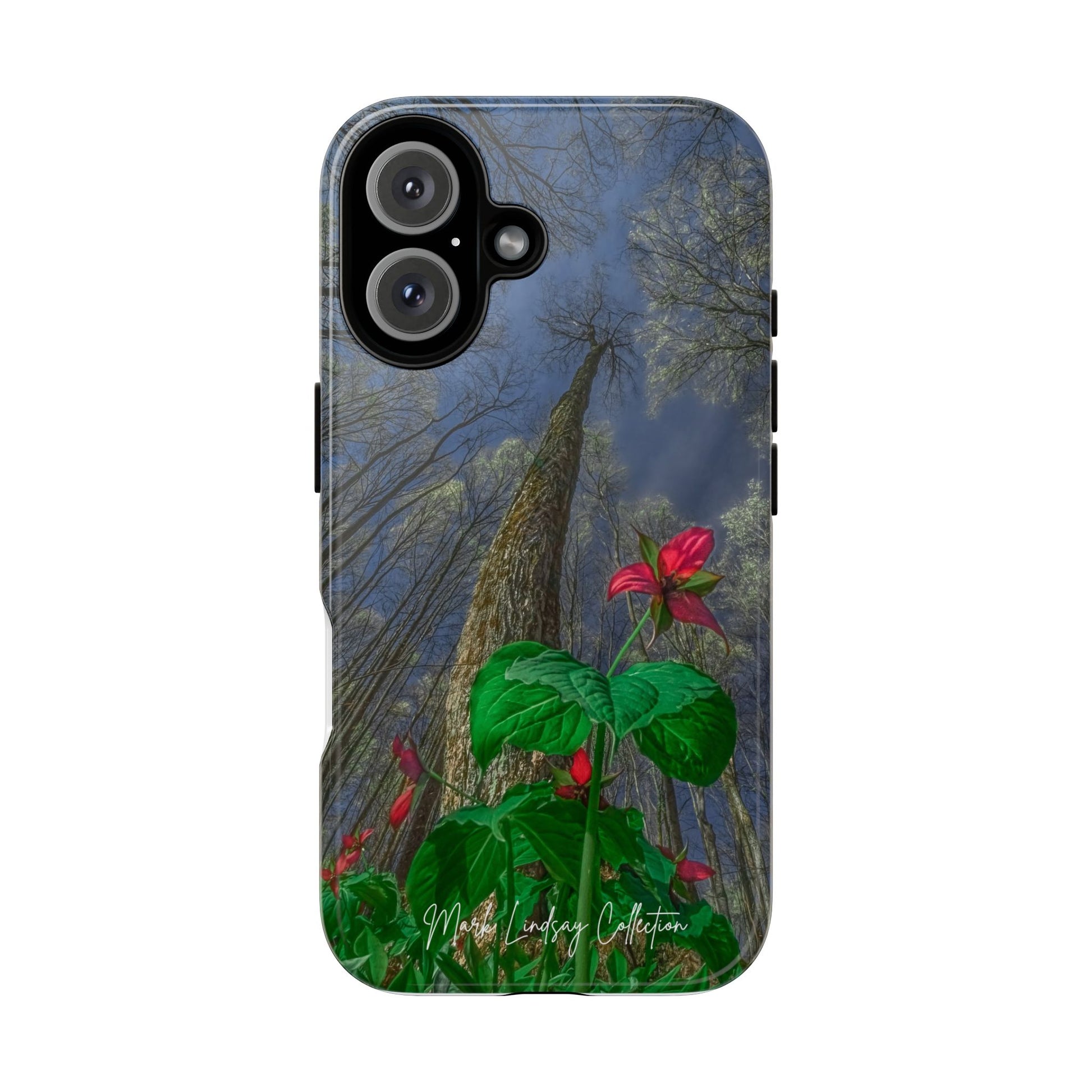 This phone case brings the hush of a Northern Michigan spring to your everyday carry. The rare red trillium — delicate, three-petaled and vividly hued — blooms across the case in a full-wrap, high-density print that feels like a small wildflower pressed against your palm. Built as a dual-layer shield with a tough polycarbonate shell and soft TPU liner, it takes knocks and slips in stride while keeping the image crisp thanks to UV protection and certified coatings. The slim profile keeps ports open and wireless charging available, so your phone stays protected and ready without sacrificing function. For someone who slows down to notice forest floor wildflowers, who treasures local flora and wants it with them on the go, this case turns a quiet, native bloom into a durable, everyday companion.
