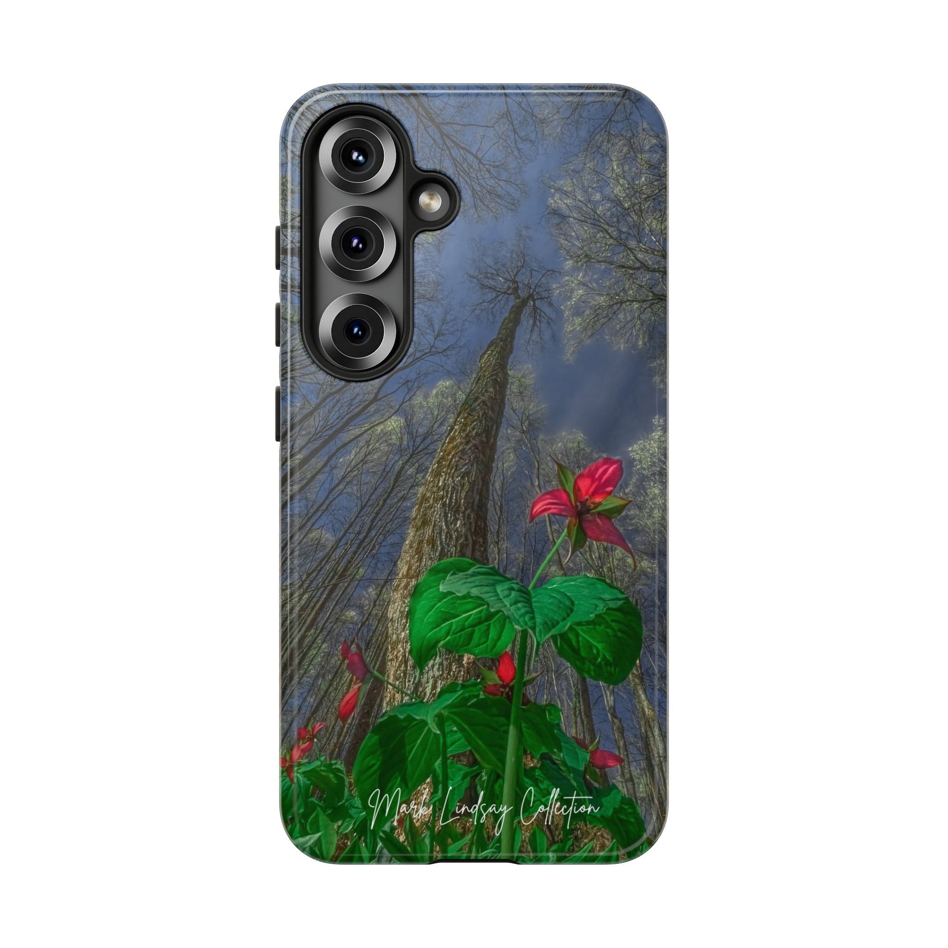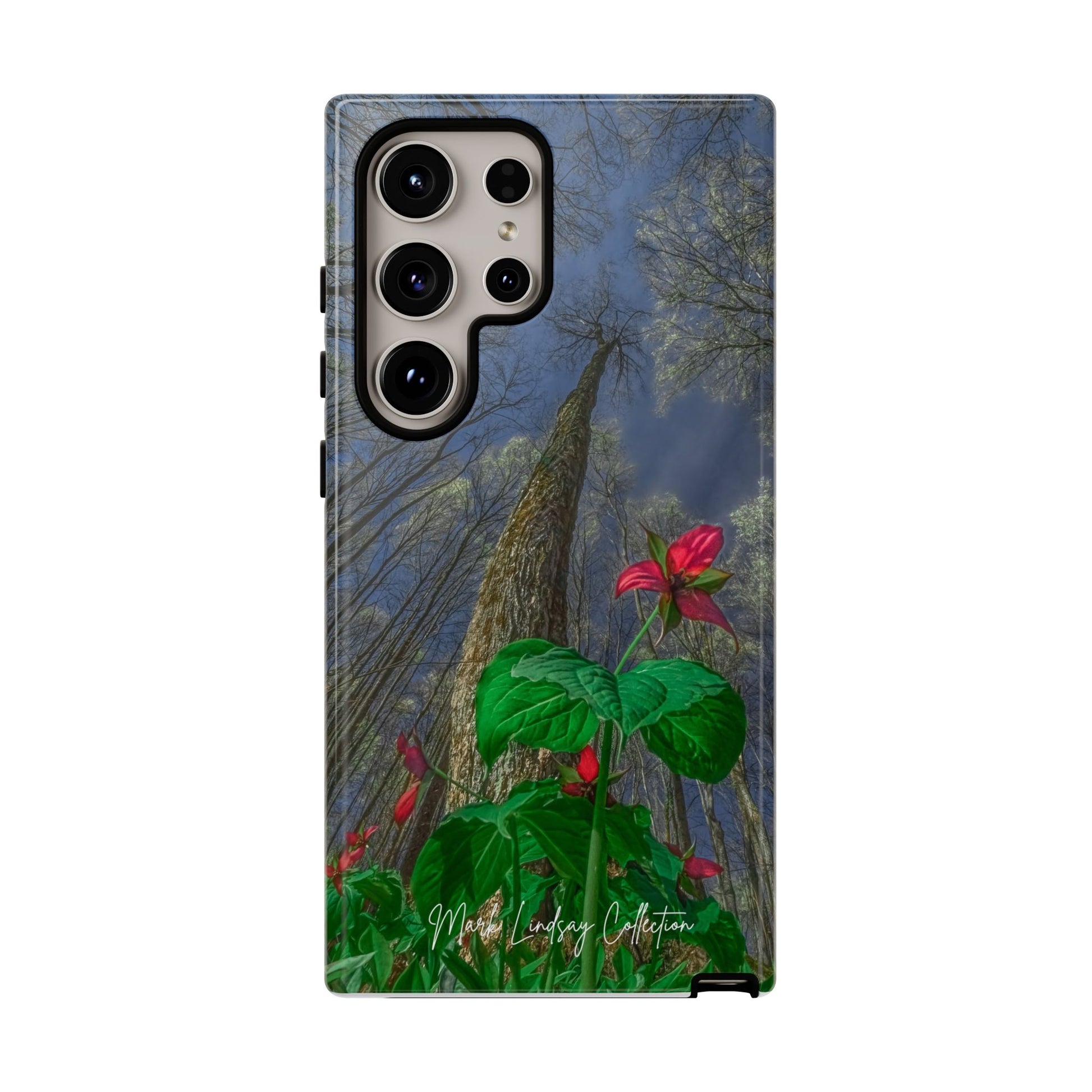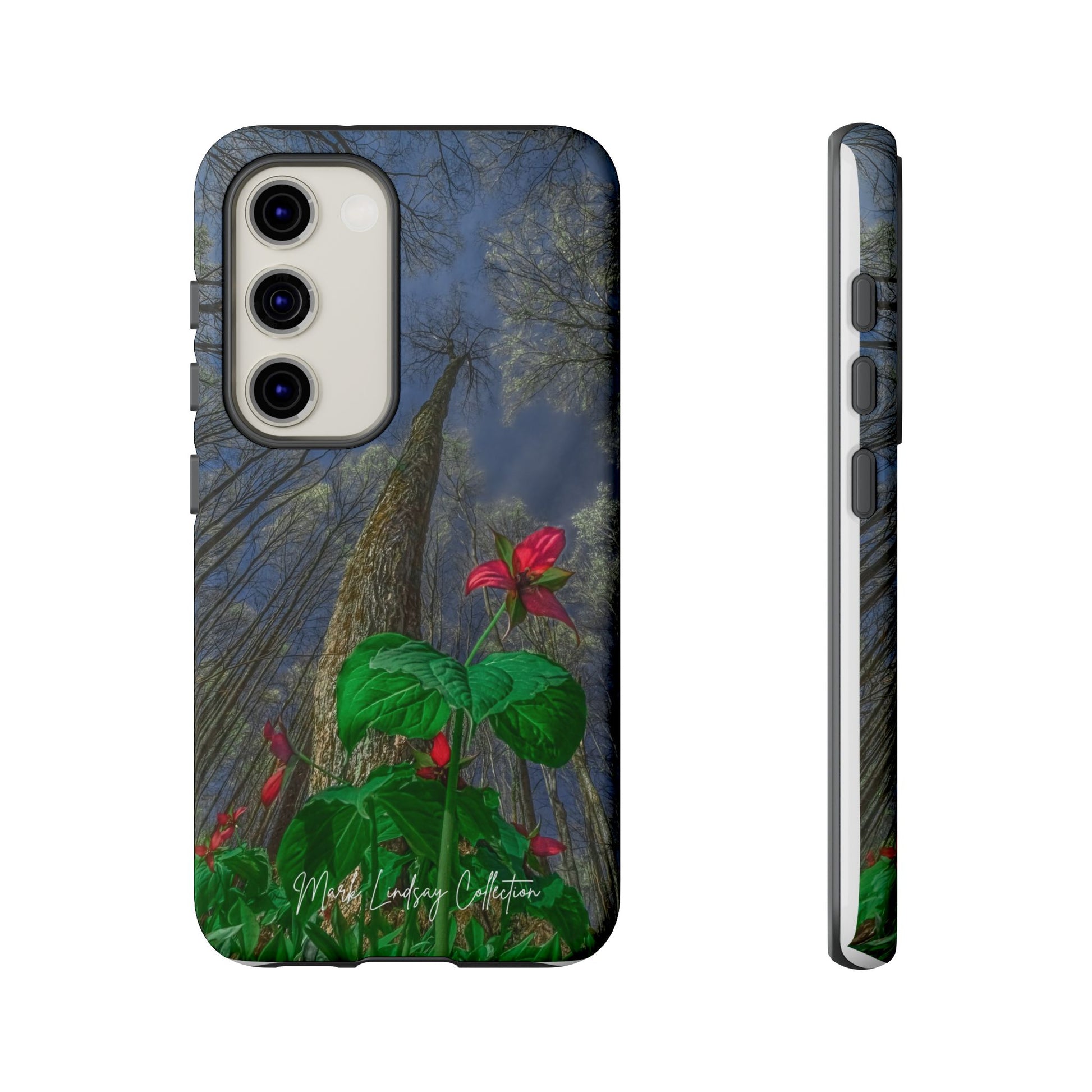 This phone case brings the hush of a Northern Michigan spring to your everyday carry. The rare red trillium — delicate, three-petaled and vividly hued — blooms across the case in a full-wrap, high-density print that feels like a small wildflower pressed against your palm. Built as a dual-layer shield with a tough polycarbonate shell and soft TPU liner, it takes knocks and slips in stride while keeping the image crisp thanks to UV protection and certified coatings. The slim profile keeps ports open and wireless charging available, so your phone stays protected and ready without sacrificing function. For someone who slows down to notice forest floor wildflowers, who treasures local flora and wants it with them on the go, this case turns a quiet, native bloom into a durable, everyday companion.